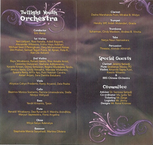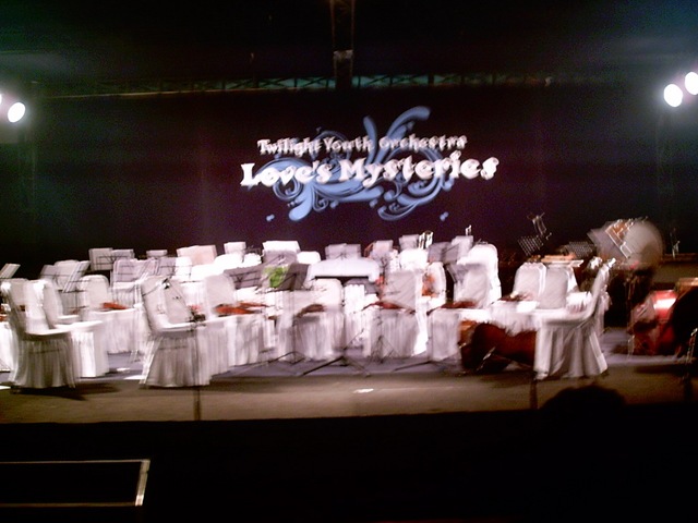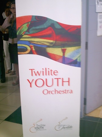 Pada tanggal 15 Agustus 2008, jam 19:00 sampai 21:00. Sekolah saya (Bina Bangsa School) mengadakan acara orchestra, bernama Twilight Youth Orchestra. Acara itu diselenggarakan di lantai 7 ruang assembly. Sekolah Bina Bangsa mengundang orang dari luar (bukan dari dalam sekolah) untuk memainkan alat musik. Terdapat 550 tempat duduk yang tersedia disana. Terdapat 40% Tempat duduk busa, dan 60% tempat duduk plastik.