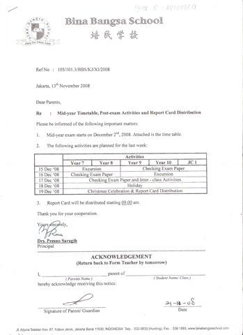 Tanggal 19 Desember – Pengambilan Rapot