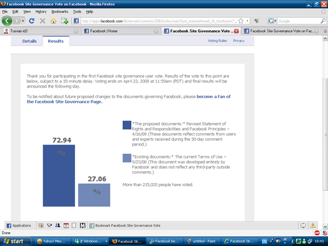 Pemungutan suara itu tentang rencana perubahan persetujuan akan penggunaan website facebook.