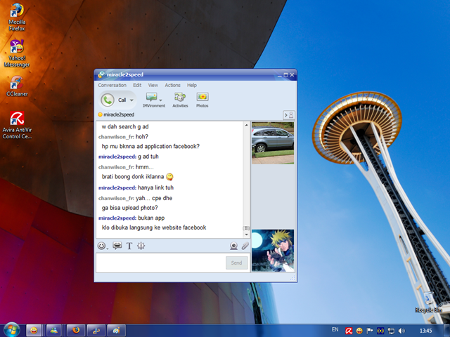 Catatan : saya membuka 2 yahoo messenger dan 3 msn messenger.