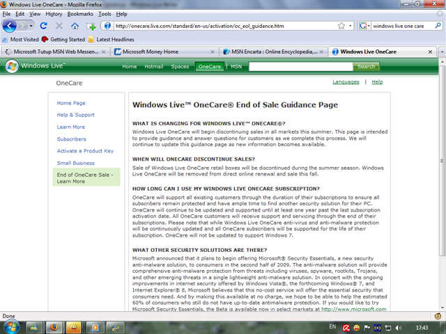 web messenger skrng terintegrasi dgn hotmail. live one care jadi security essentials.