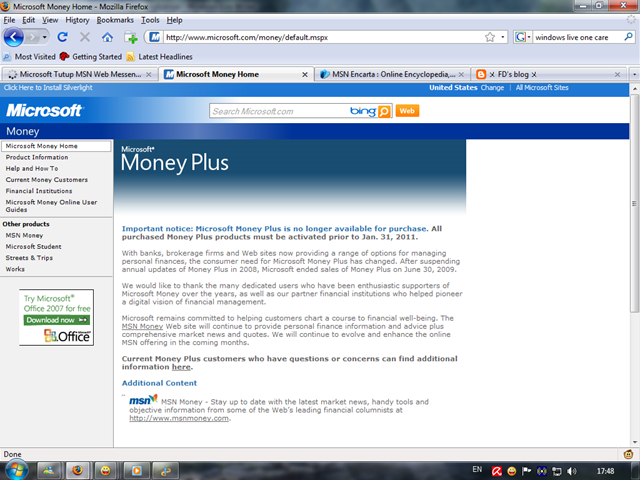 Mungkin saja microsoft sadar bahwa produk-produknya memang kurang membawa keuntungan dan kalah dengan kompetitornya. (Intuit Quicken dan Wikipedia)