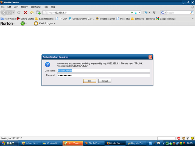 - Buka web interface dari router anda dengan mengetikkan “192.168.1.1” di address bar browser anda dan masukkan password anda.