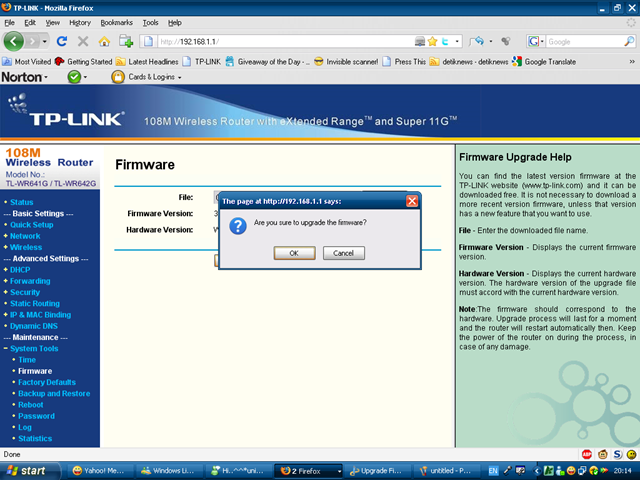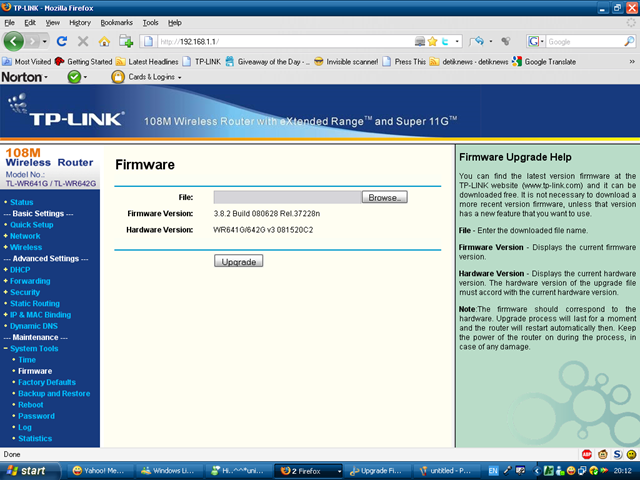 Mungkin beberapa dari anda ingin mengupgrade firmware router anda. Mengupgrade firmware akan menambah fitur-fitur baru pada router anda, dan mungkin akan memberikan stabilitas yang lebih baik.