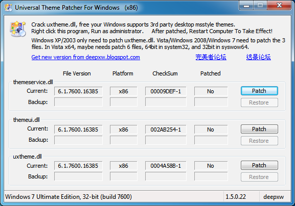 http://soft3.wmzhe.com/download/deepxw/UniversalThemePatcher_20090409.zip