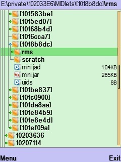 - Buka E:\private\102033E6\MIDlets (Untuk yang install di phone memory, silakan ganti E:\ dengan C:\