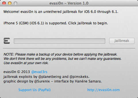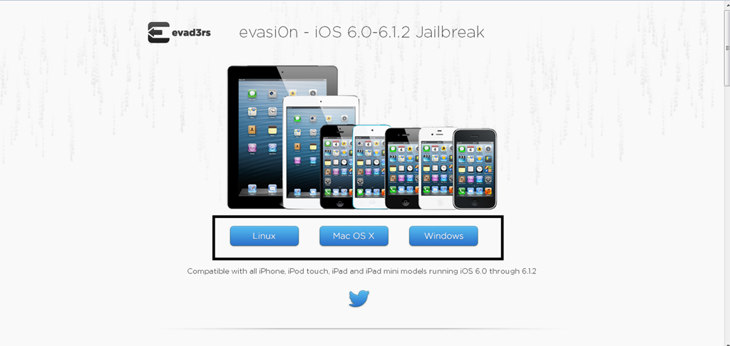 1. Download program jailbreak dari http://evasi0n.com/ dan klik operating system dimana jailbreak akan dijalankan