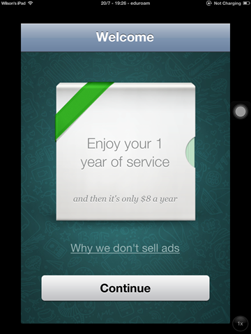Namun yang paling menarik diantara upgrade tersebut adalah whatsapp sekarang gratis di appstore. Whatsapp di iOS mengikuti model subscription whatsapp di platform android, yaitu pengguna dapat men-download aplikasi ini secara gratis, dan diberikan trial selama 1 tahun. Dimana di tahun ke 2 dan selanjutnya, pengguna harus membayar US$0.99 (HK$ 8 / Rp, 9900) untuk dapat melanjutkan penggunaan whatsapp.