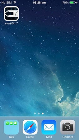 5. Ketika ada perintah untuk membuka program “evasi0n 7”, sentuh icon tersebut di device anda